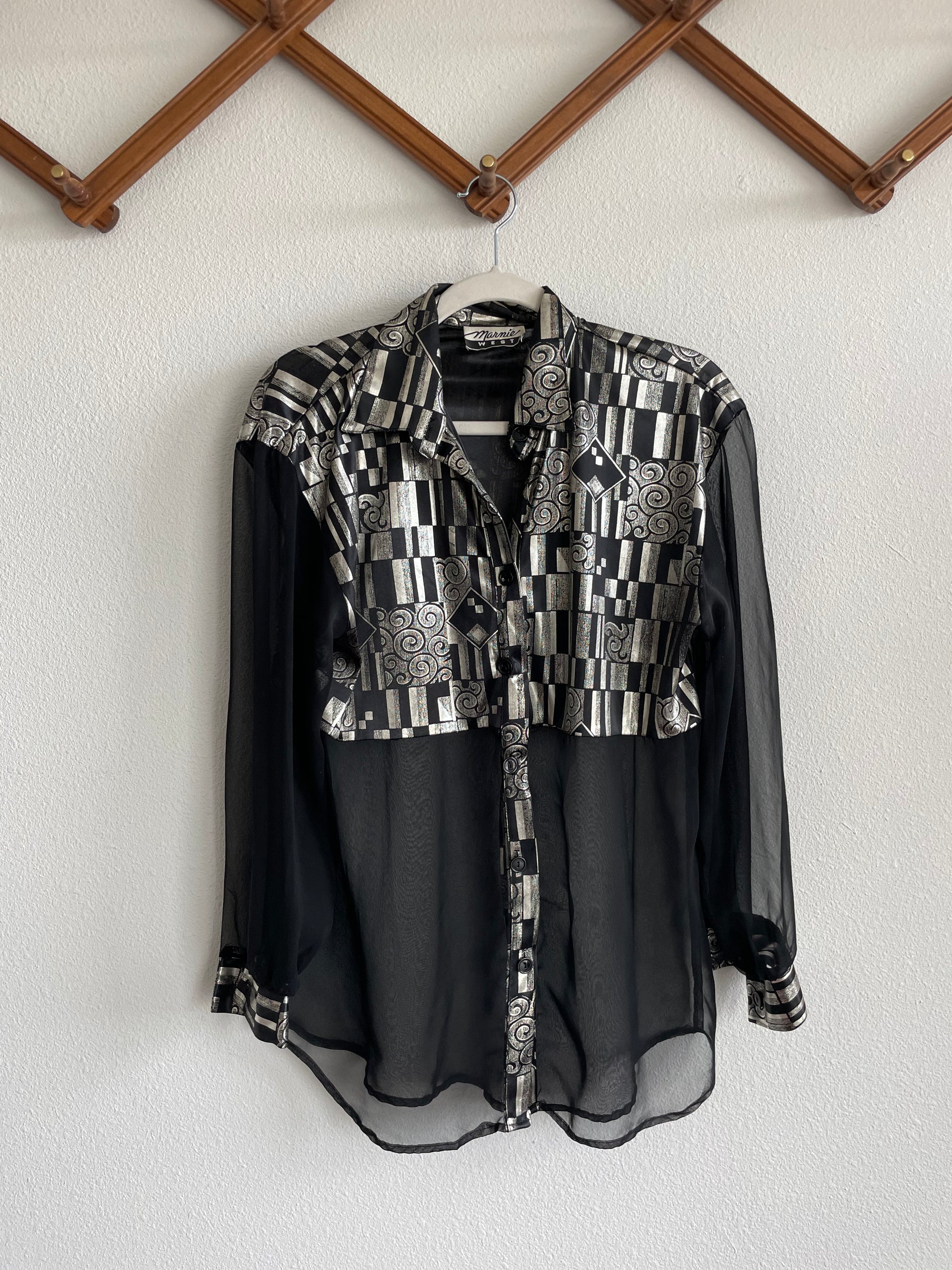 80s Sheer Stagecoach Disco Blouse Sz M